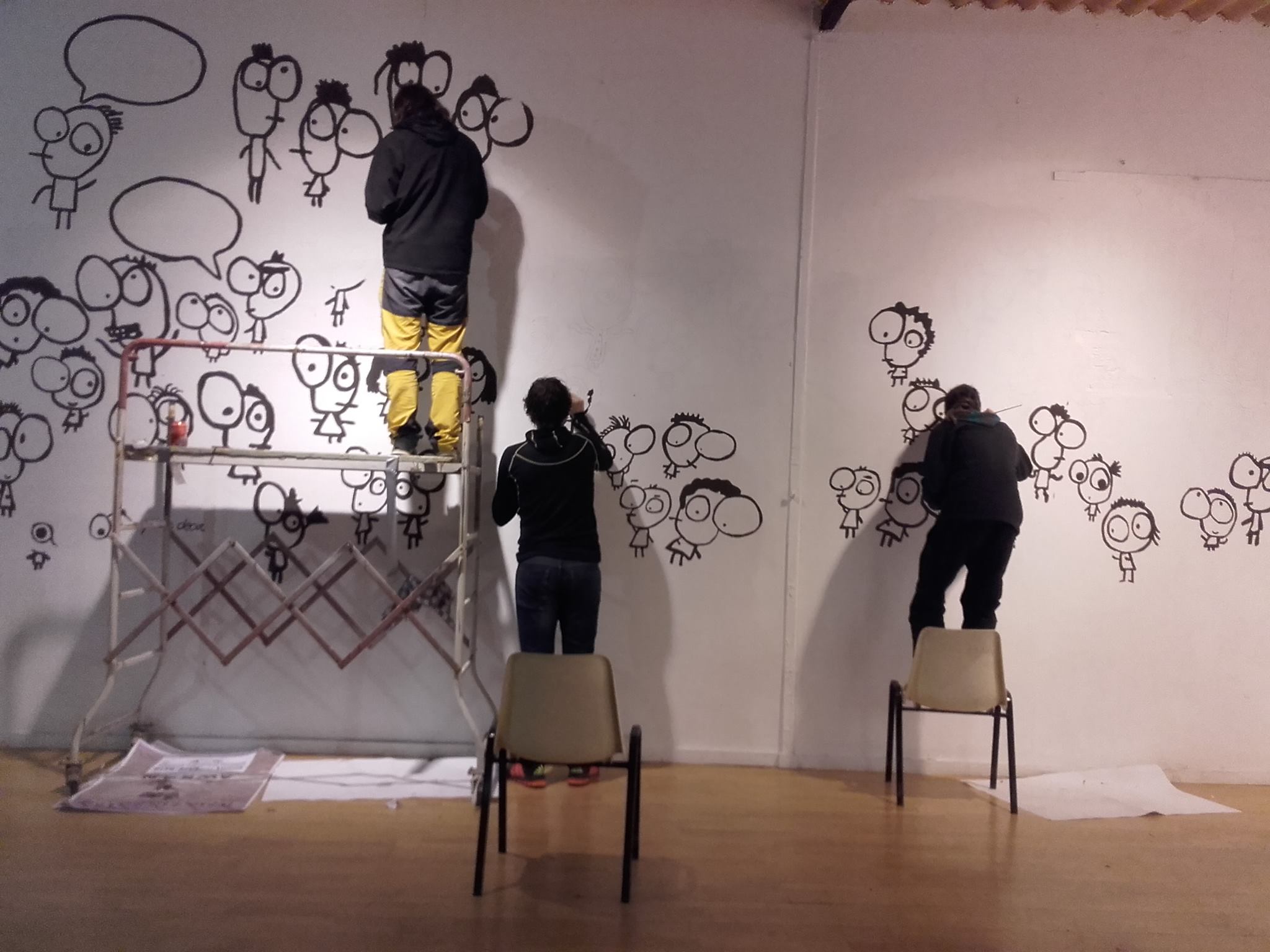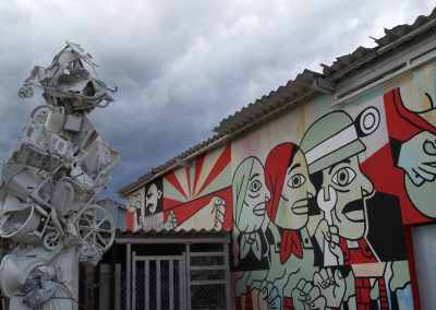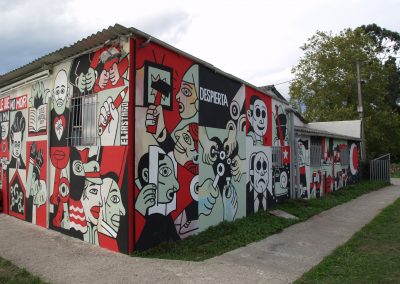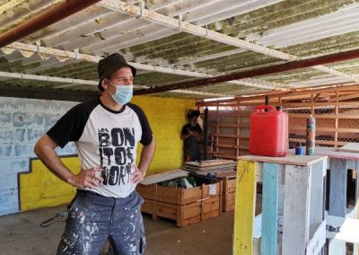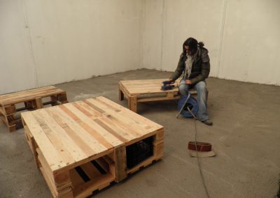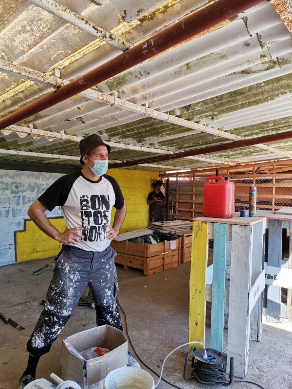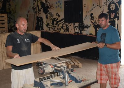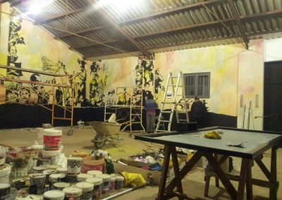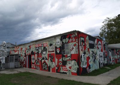 LA NAVE: es el espacio principal. Son dos naves unidas (pequeña y grande). En la nave grande está el escenario y camerino. En la nave pequeña hay una sala de exposiciones y los aseos. También hay una zona exterior ajardinada.