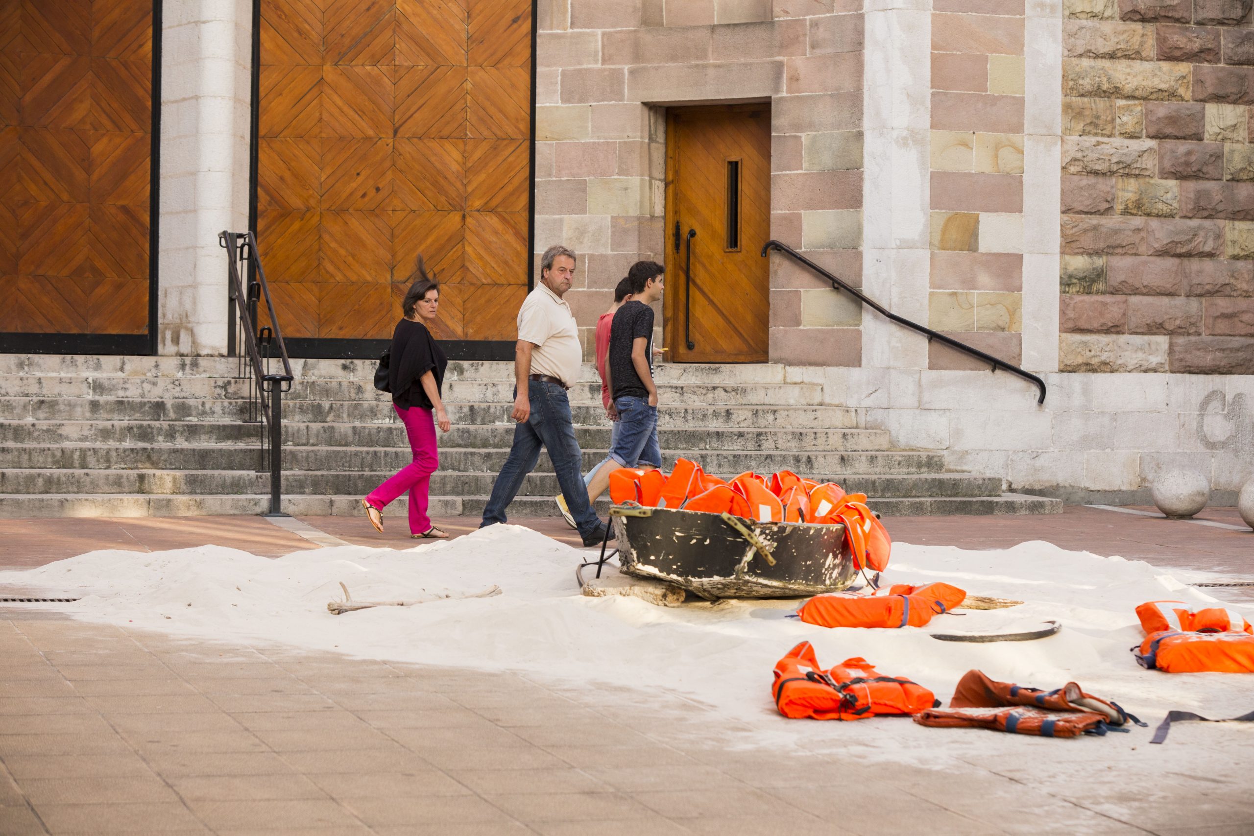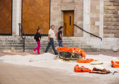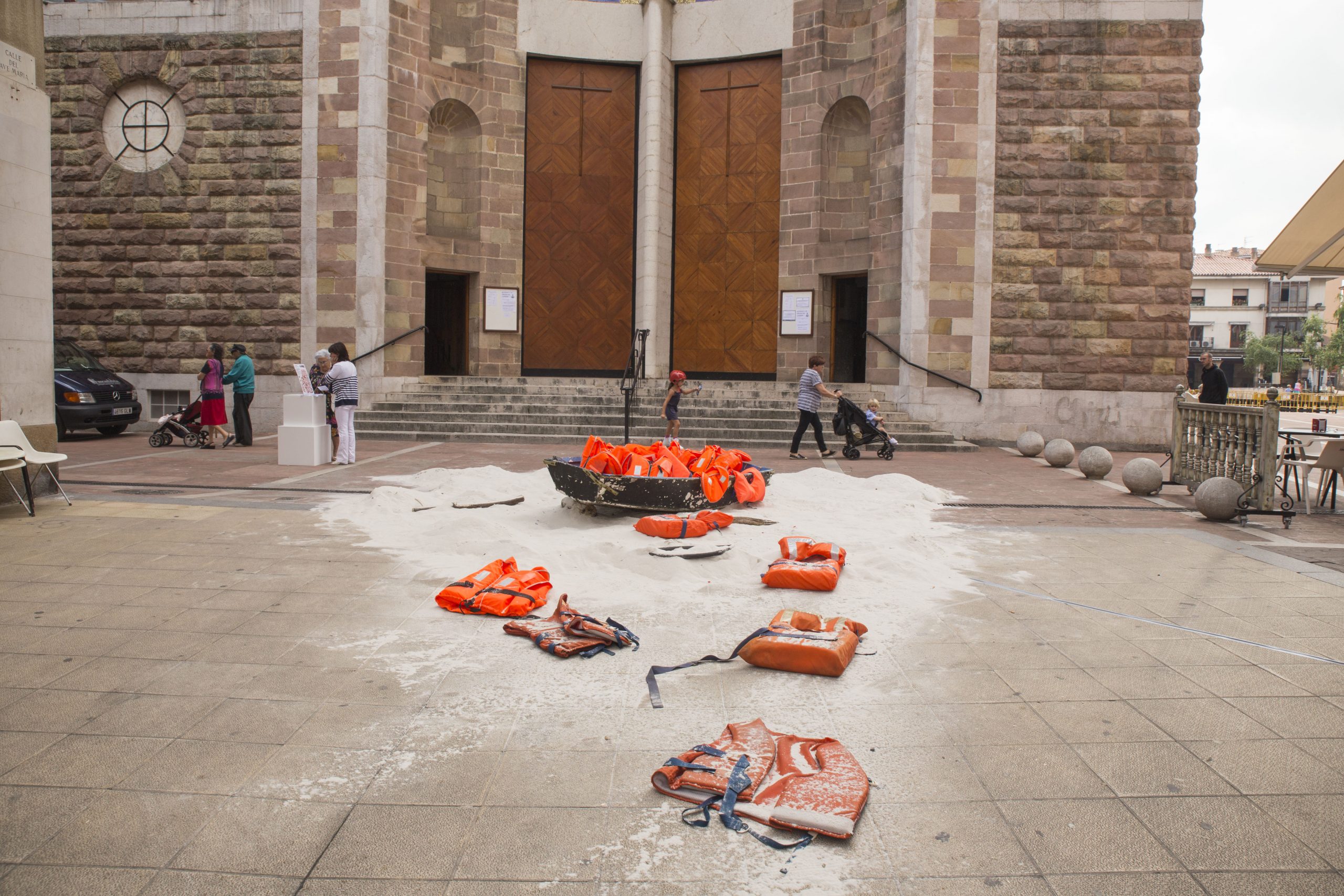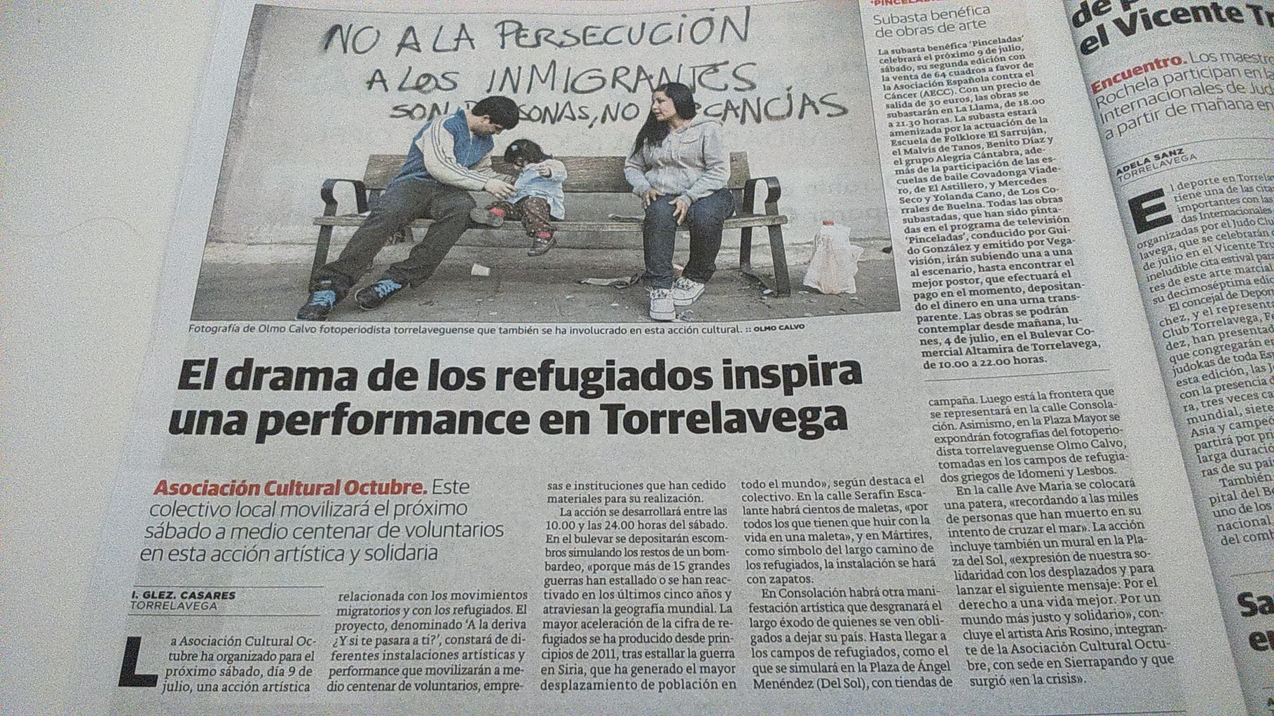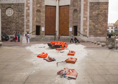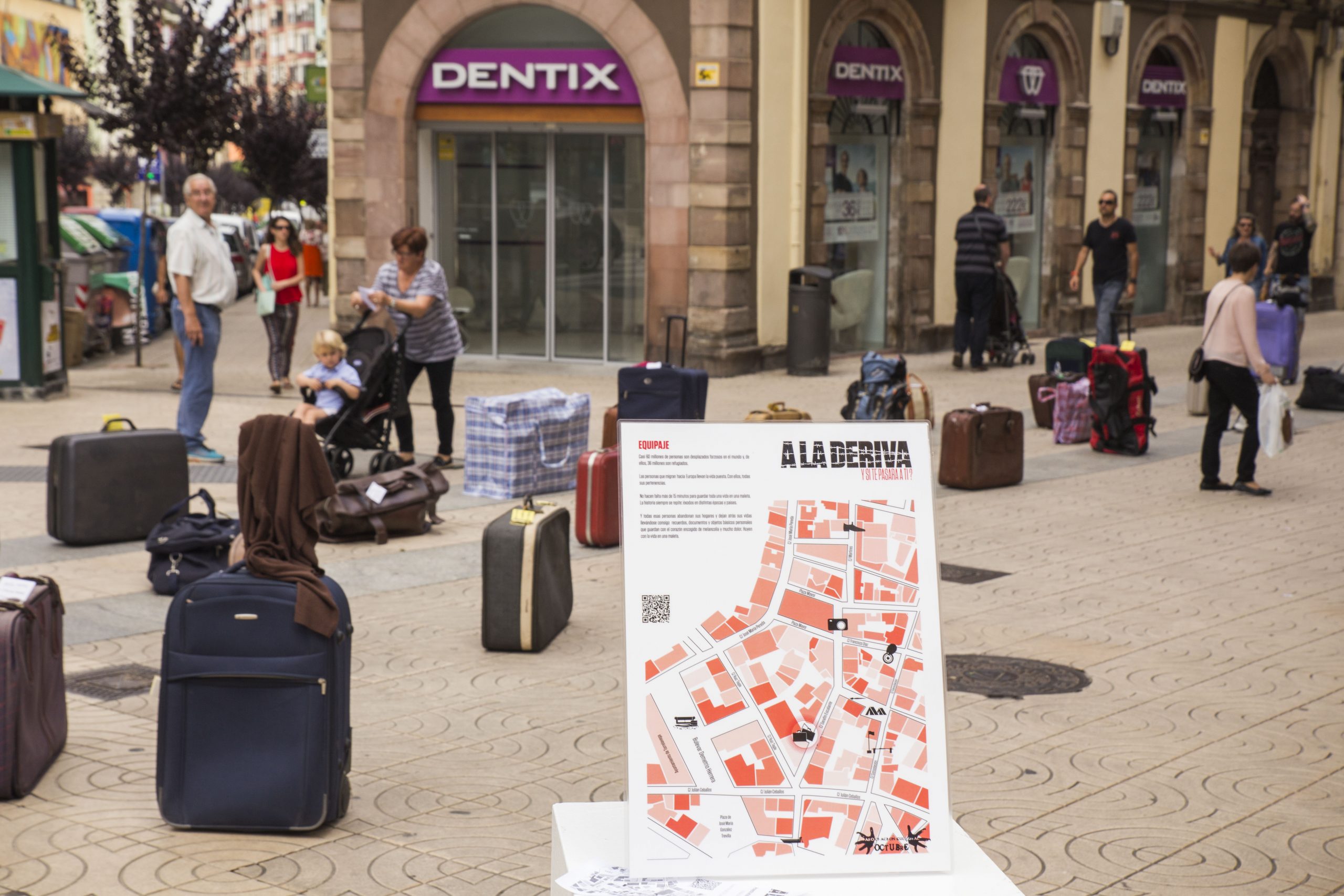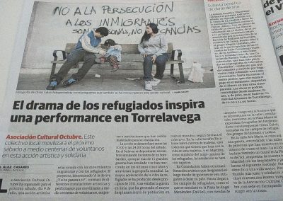 La Asociación Cultural OCTUBRE, de Torrelavega, presenta “A la deriva”, su última acción artística, realizada en el centro de la ciudad y relacionada con los movimientos migratorios y en especial, relacionada con los refugiados. Estamos preocupados y alarmados ante estos acontecimientos, ante esta vulneración de un derecho humano elemental, como es la propia vida.