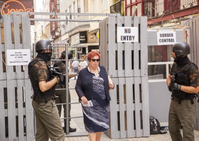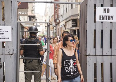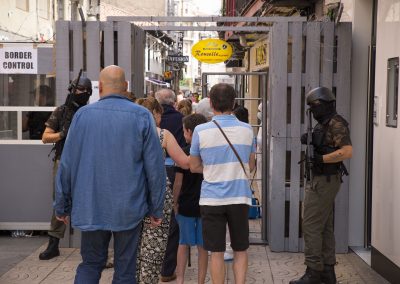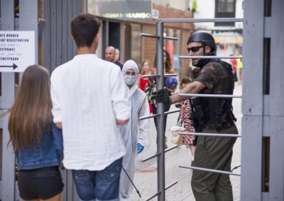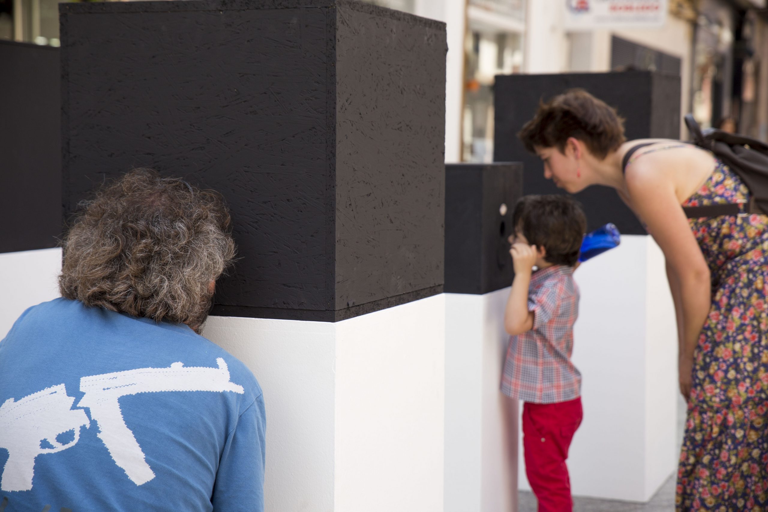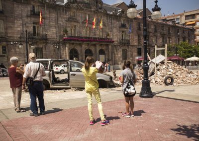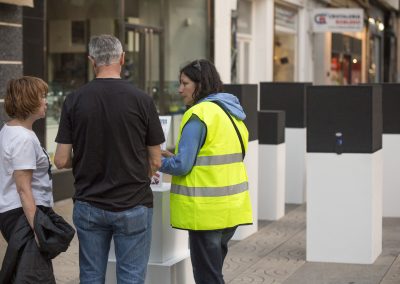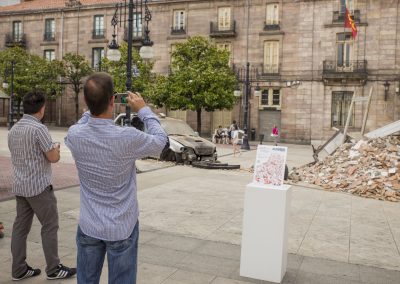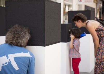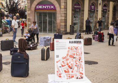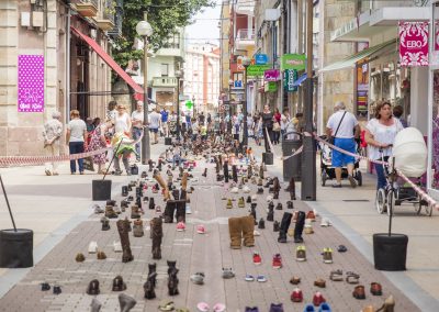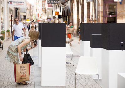 En este caso, nuestra acción artística se compone de diferentes montajes, instalaciones artísticas en diferentes calles y espacios del centro de la ciudad, simultáneamente durante una jornada, que se pueden encontrar siguiendo un itinerario marcado en un mapa callejero.