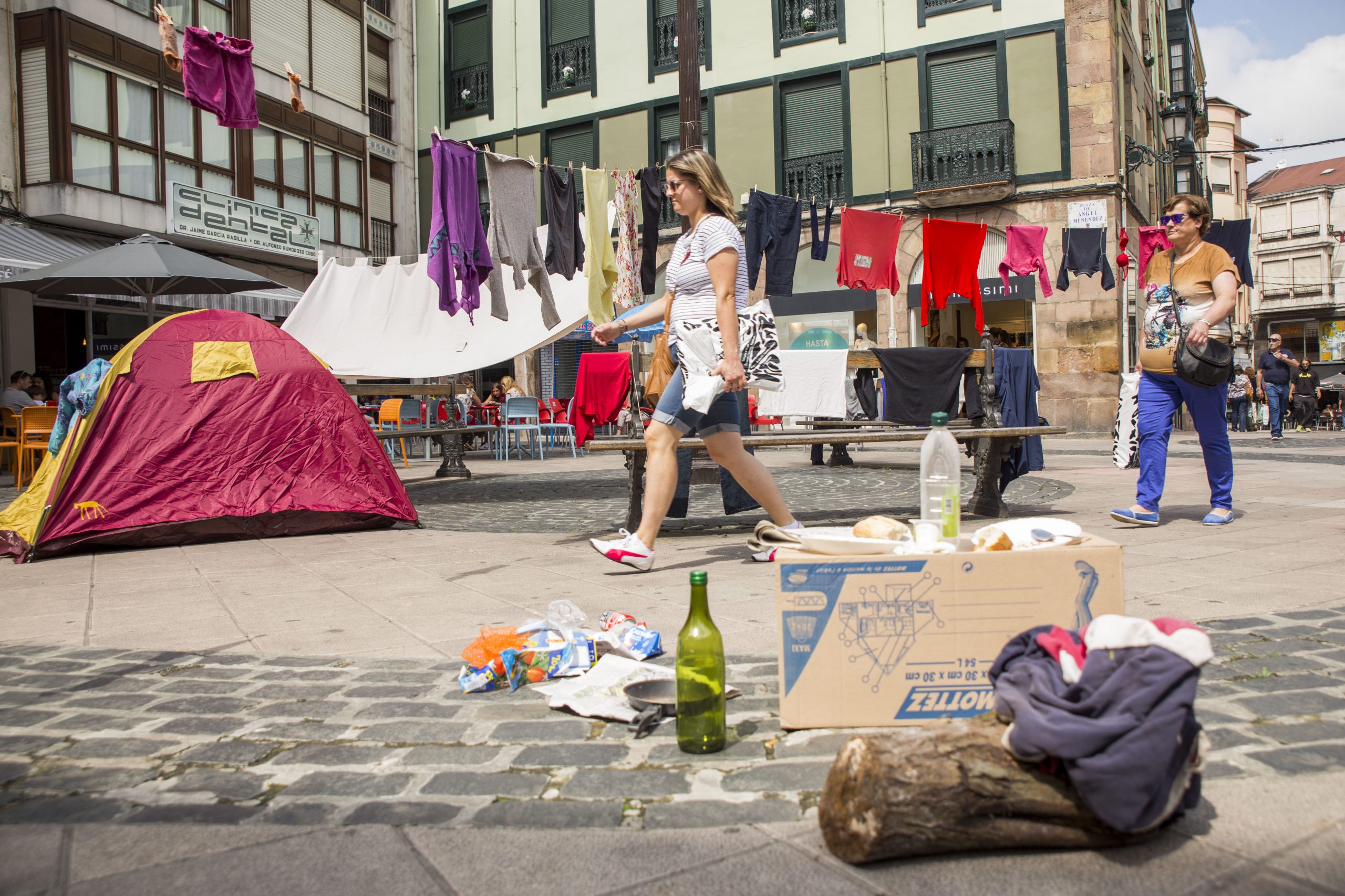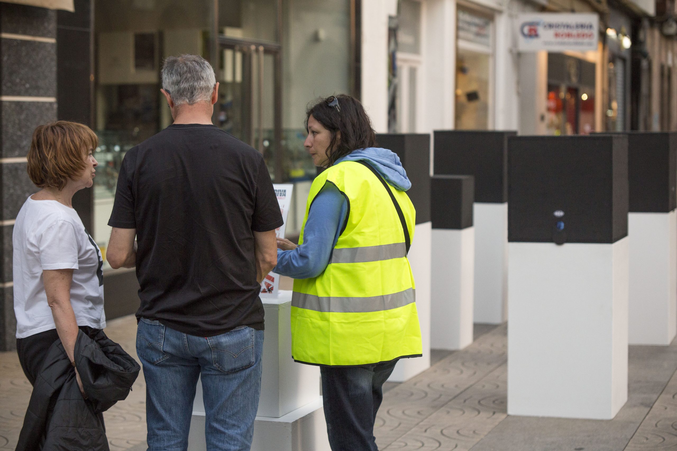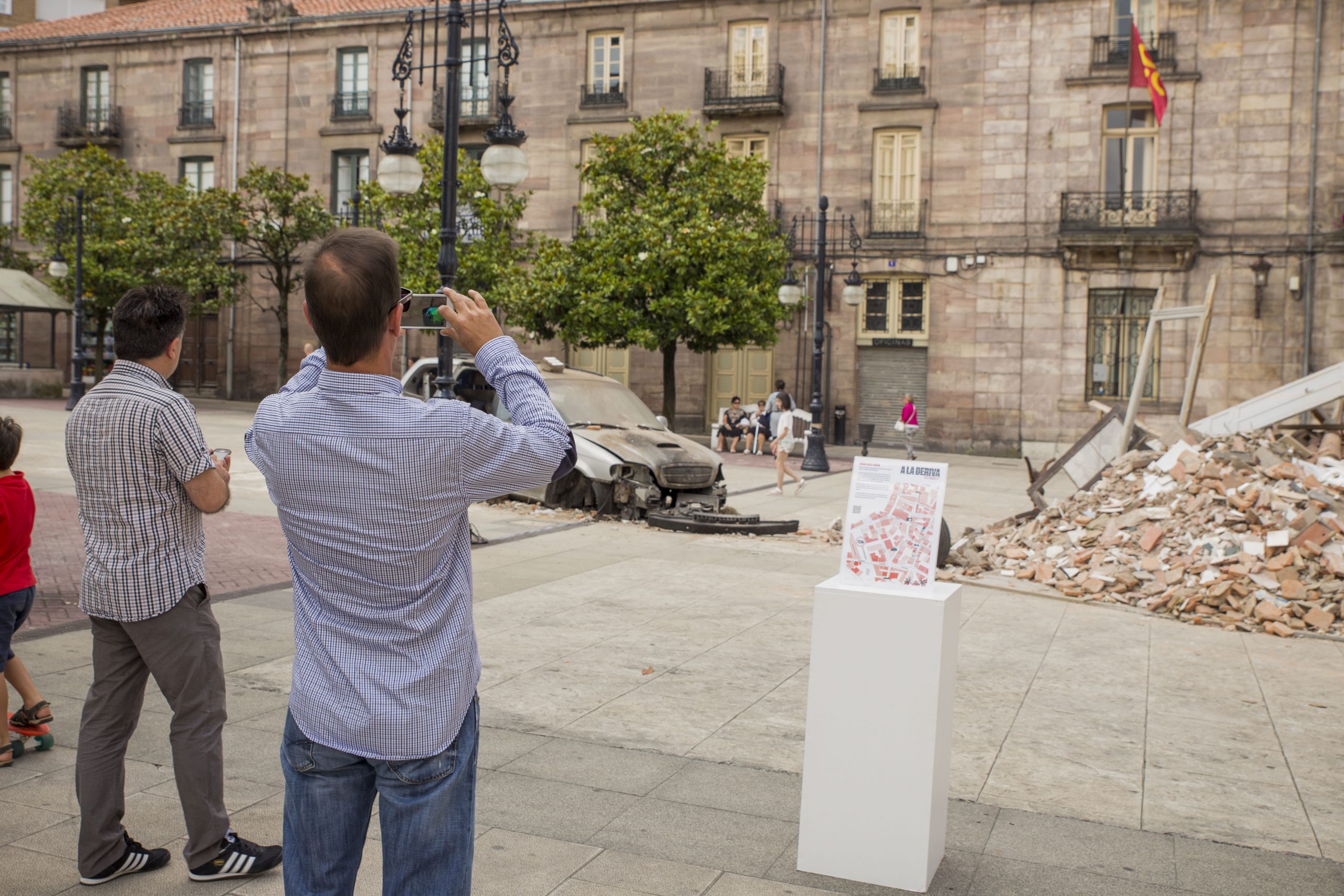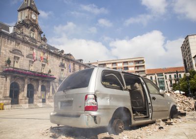 Utilizamos el propio medio urbano, el espacio público, las calles de Torrelavega. En algunos casos complementaremos la acción con fotografías o imágenes, además de diversos objetos que colocamos de manera intencionada. En otros casos, será a través de la performance, de escenificaciones en plena calle, buscando una mayor interacción social, en contacto con la gente, entendiendo aquí el arte como un acto comunicativo.
