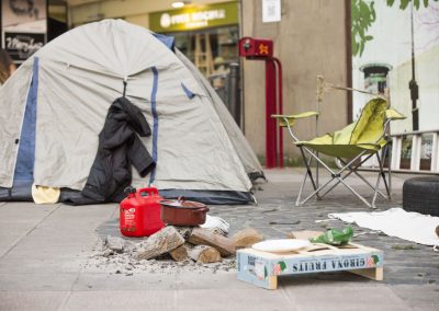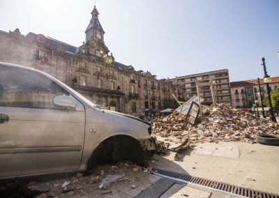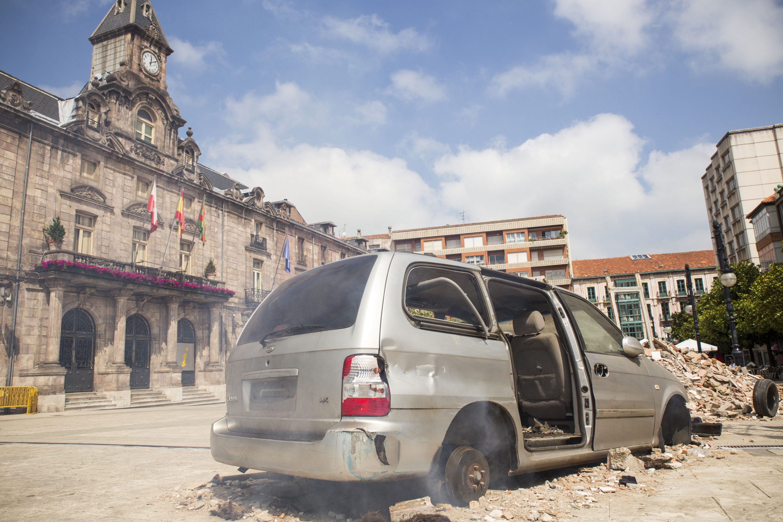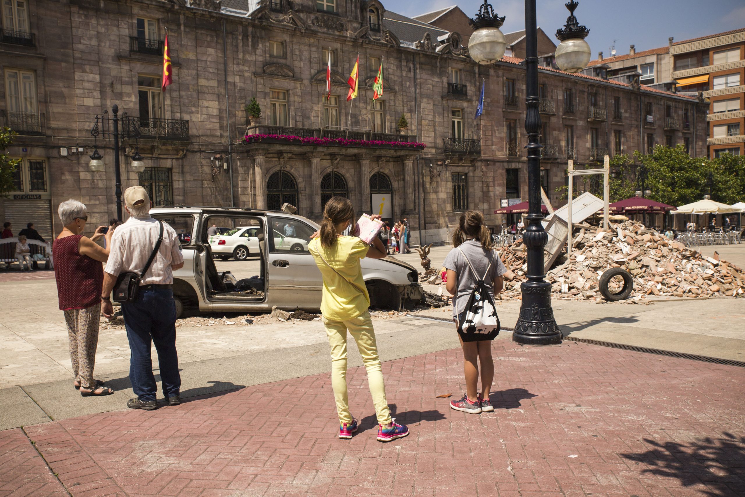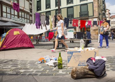 Utilizamos el propio medio urbano, el espacio público, las calles de Torrelavega. En algunos casos complementaremos la acción con fotografías o imágenes, además de diversos objetos que colocamos de manera intencionada. En otros casos, será a través de la performance, de escenificaciones en plena calle, buscando una mayor interacción social, en contacto con la gente, entendiendo aquí el arte como un acto comunicativo.