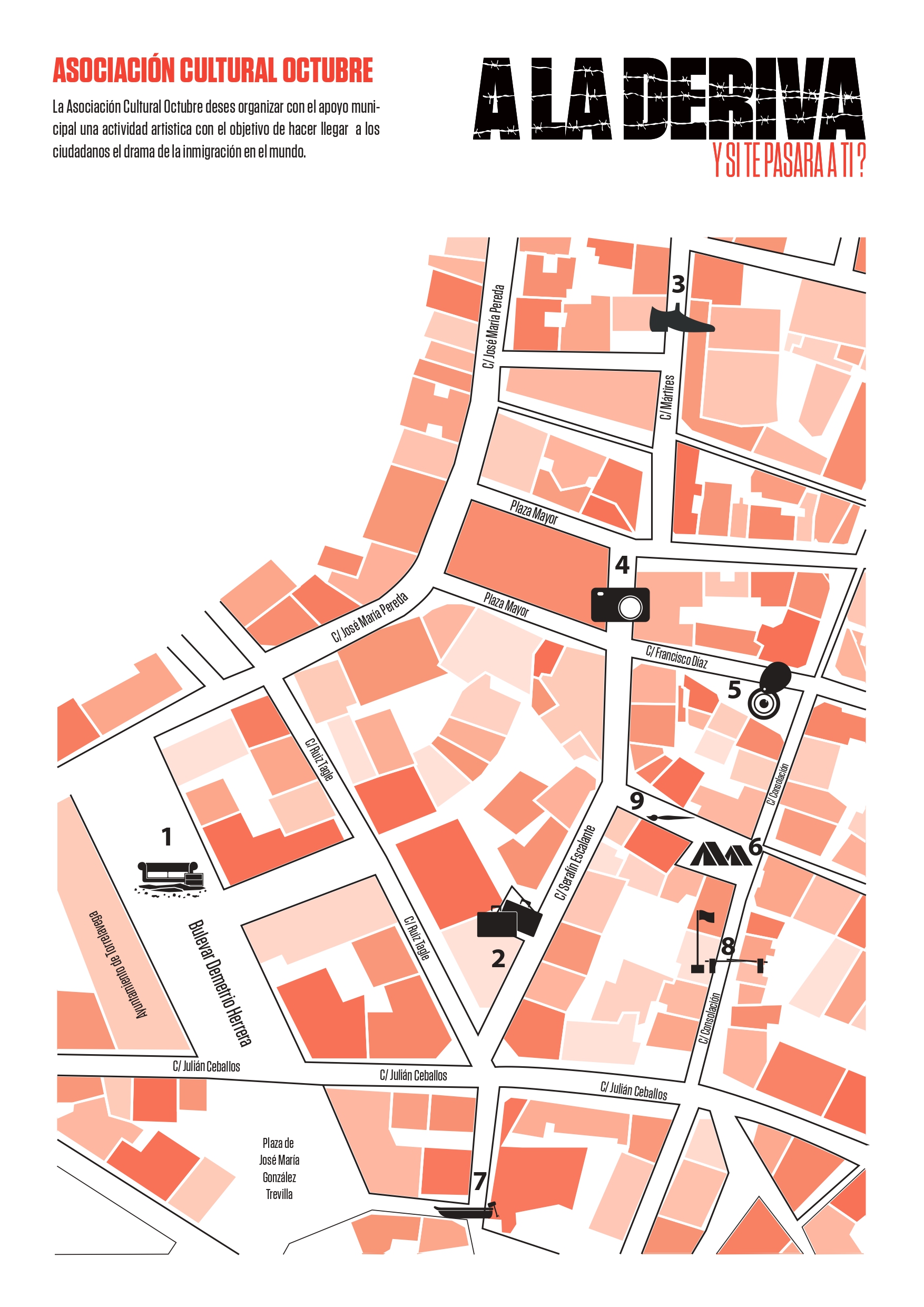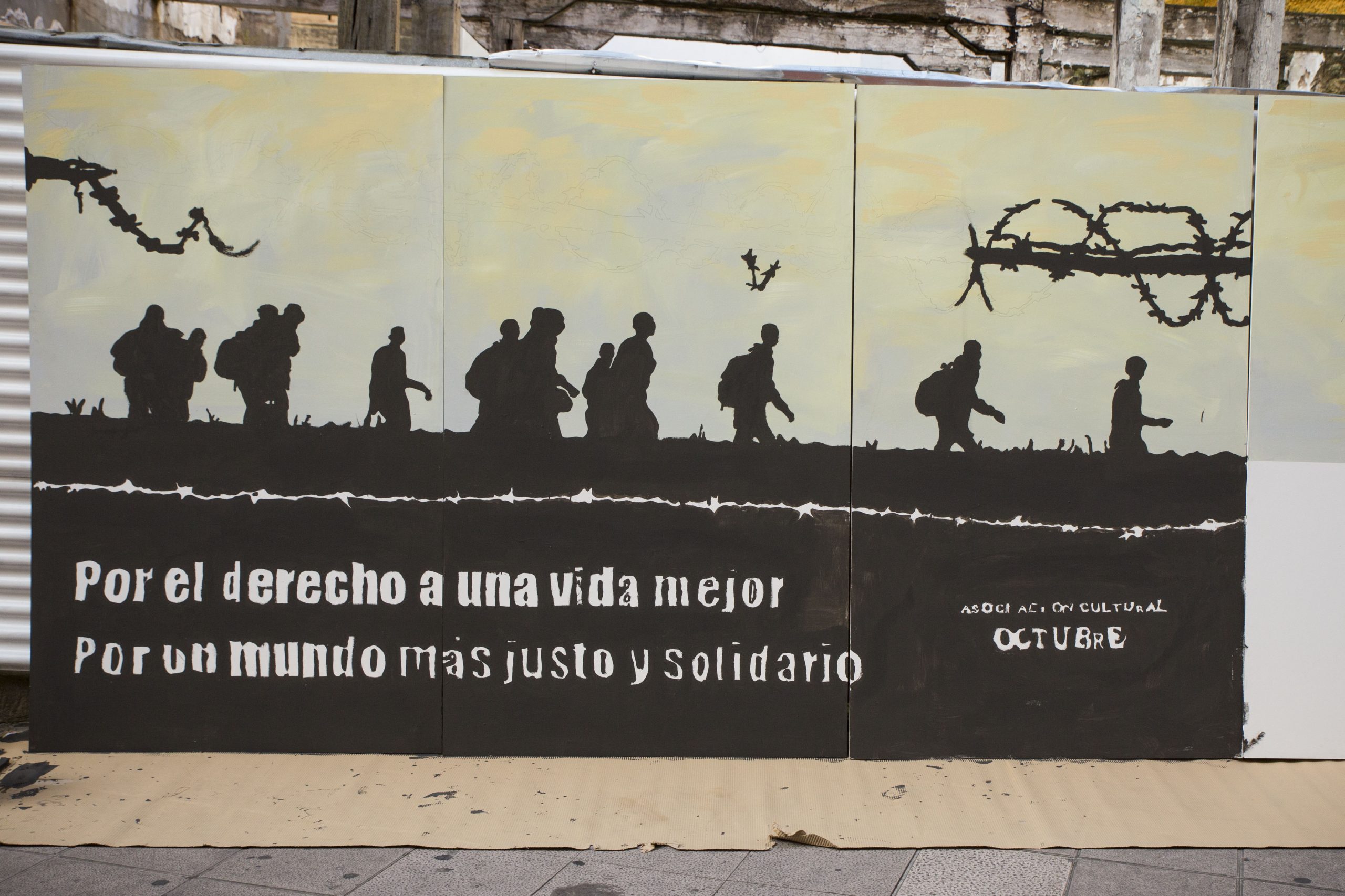 No es la primera vez que la Asociación Cultural OCTUBRE denuncia, a través del arte, las diferentes situaciones por las que tienen que pasar las personas migrantes: desamparo, pobreza, abandono, silencio, discriminación, racismo, represión…
