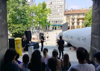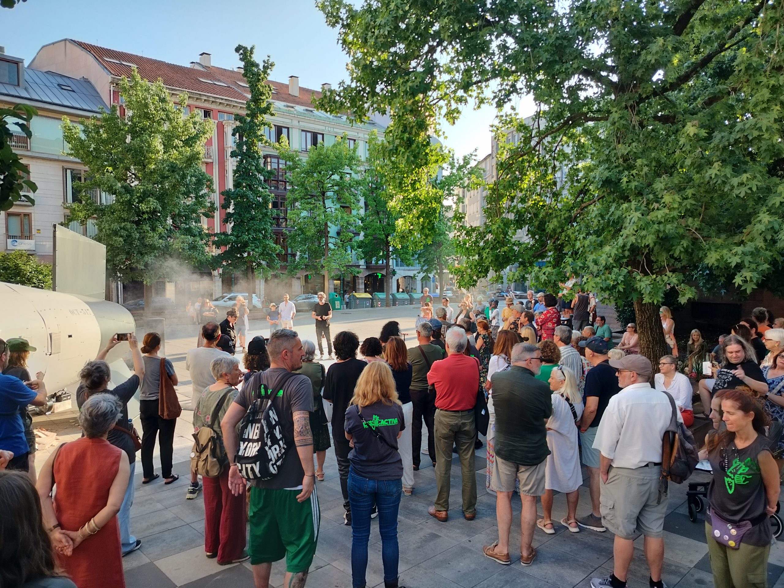 Nuevamente, con esta acción artística, nos proponemos tomar el espacio público, denunciar una injusticia, visibilizar otras realidades, generar preguntas y cierta incomodidad provocando reflexión crítica y rompiendo con la indiferencia. Pero, sobre todo, pretendemos DESACTIVAR el relato oficial, y proponer alternativas.
