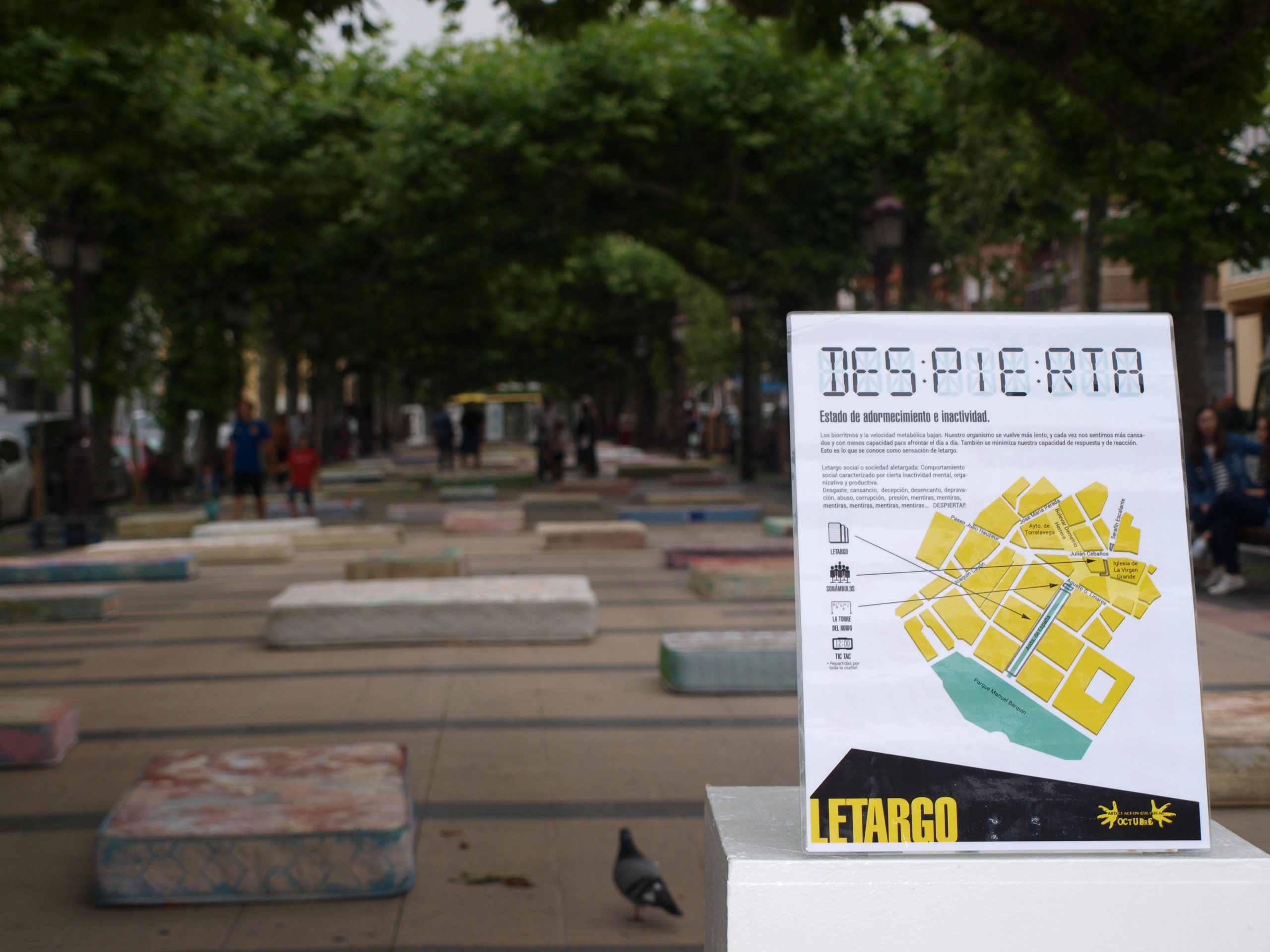 La Asociación Cultural OCTUBRE, de Torrelavega, presenta “Despierta” una acción artística que nuevamente se compone de diferentes montajes en distintos espacios del centro de la ciudad, simultáneamente durante una jornada, que se pueden encontrar siguiendo un itinerario marcado en un mapa callejero.