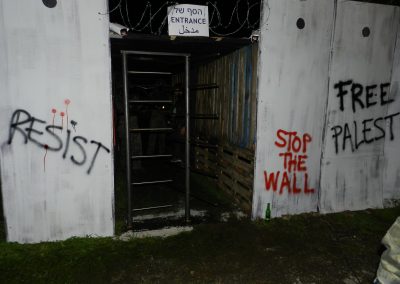 Muchos palestinos tienen que cruzar estos puestos de control diariamente (para ir a trabajar, para ir a la escuela, para ir a comprar, para visitar a familiares, para ir al médico…). Estos obstáculos, junto al muro de cemento que cierra su paso, transforma un trayecto que se podría hacer en pocos minutos, en una odisea de muchas horas de viaje (eso si les permiten pasar). En estos puestos de control, cada persona palestina es víctima de humillaciones y, a menudo, de violencia física.