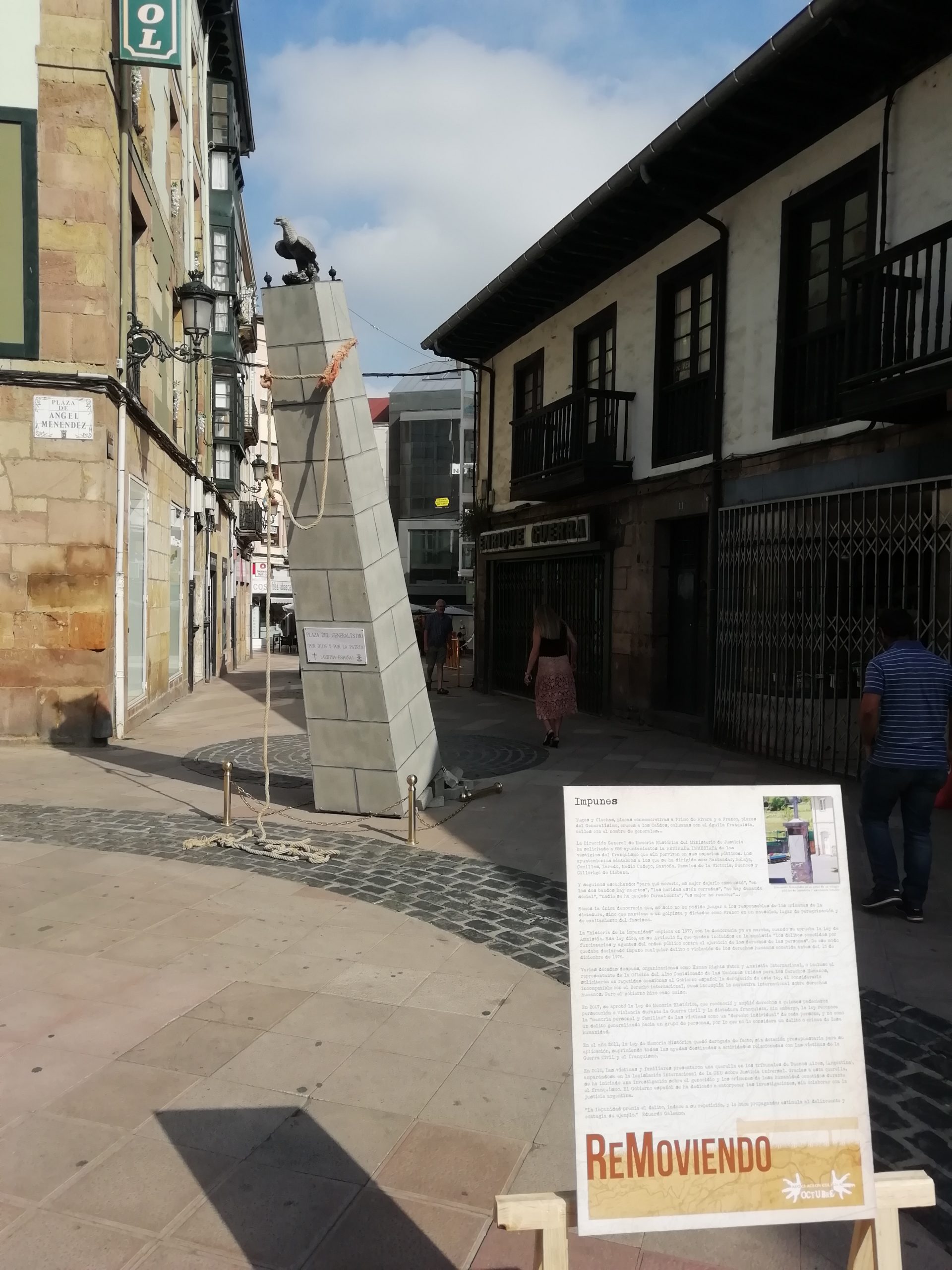 “REMOVIENDO” es un trabajo de estudio y análisis sobre esa historia que se nos oculta. Salimos a las calles para representar esa historia y poder compartirla. Es una forma de protesta creativa. Nos apoyamos en el arte para transmitir ideas, para provocar reacciones, para “remover” conciencias, para desvelar lo que ha sido enterrado, tapado y silenciado.